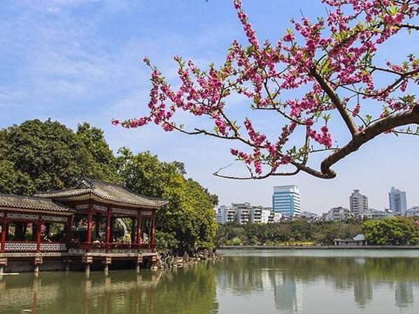 3. "西湖公园" - 西湖是福州的“市内西湖”,湖光山色,古树参天,春天时节,桃花盛开,非常迷人。