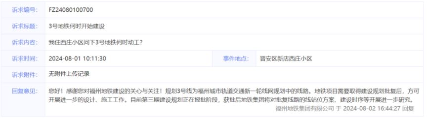 目前,福州地铁3号线还处于争取纳规阶段,具体事宜建议咨询福州市。