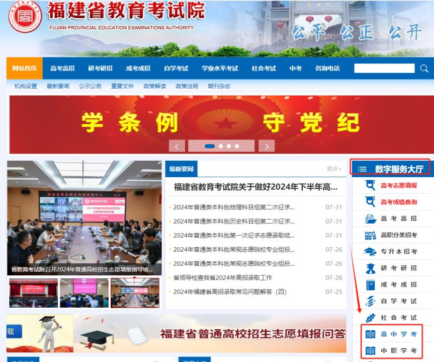 如果以上系统打不开,也可以通过福建省教育考试院官网进入系统!
