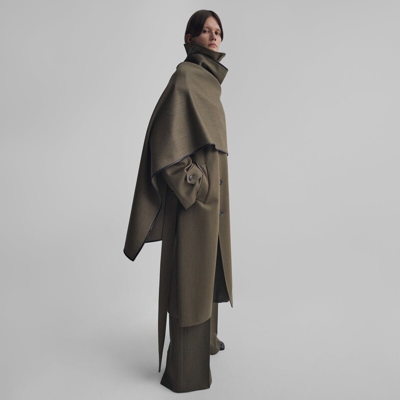 Phoebe Philo个人品牌遵循着永续与永恆的理念,儘管大部分的单品定价高昂,但它们都是经典不败的款式,能长长久久使用,且在任何时刻拿出来都不失特色,像是A1系列中的这件卡其风衣,除了有极简俐落的轮廓,在肩膀处加装了巨大的扣子,并能用于装卸同组的披肩围巾,让穿着者能随时自由变化。