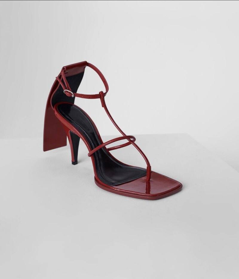 Phoebe Philo最新推出的高跟鞋很不一般,正面看似优雅的繫带夹脚跟鞋,鞋跟后方增设了一块矩形皮革片。