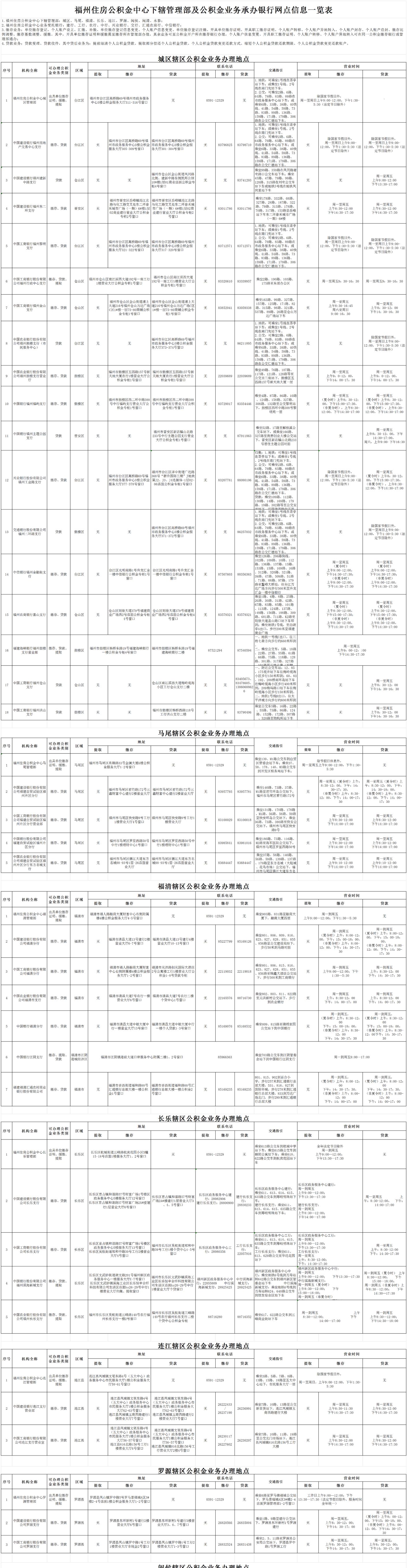》》》福州住房公积金中心下辖管理部及公积金业务承办银行网点信息一览表