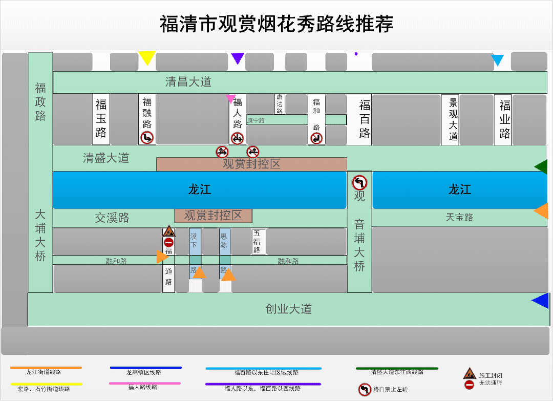 福清市元旦焰火晚会活动将于12月31日晚(星期二)在福清市龙江两岸举办。为确保活动安全顺利进行,保障道路交通安全、有序、畅通,根据《中华人民共和国道路交通安全法》第三十九条规定,决定对以下道路实行临时交通管制,现通告如下: