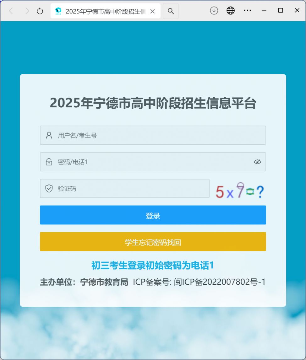 2025年宁德市高中阶段招生信息平台(https://fjndedu.cn/pub/login?returnUrl=/)