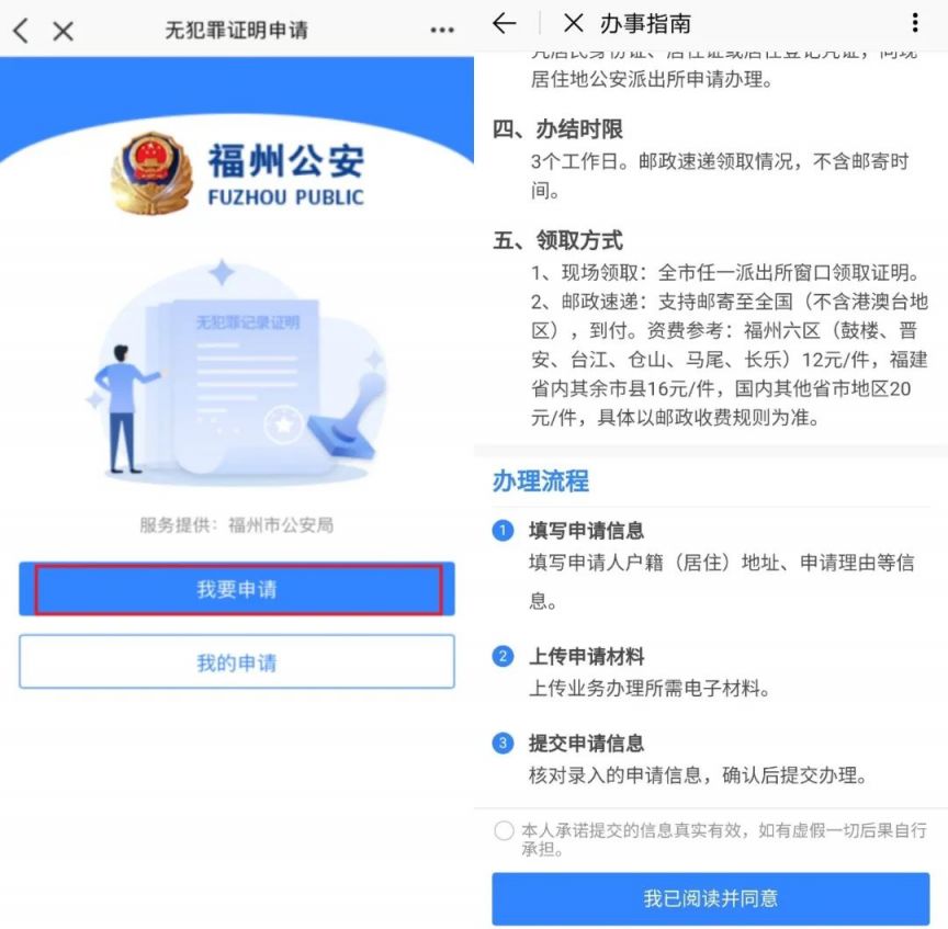 e福州APP线上申请无犯罪记录证明操作流程
