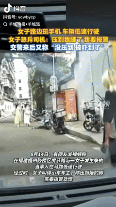 “真把马路当自己家了!”福建福州,一女子过马路时,突然停在路中间玩手机,车主见状,降低车速缓慢从女子身边驶过,没想到,被女子怒斥:“你差点压我脚”,还扬言要报警处理,交警赶到现场后,女子的操作,让人意外,网友:真是林子大了,什么鸟都有!