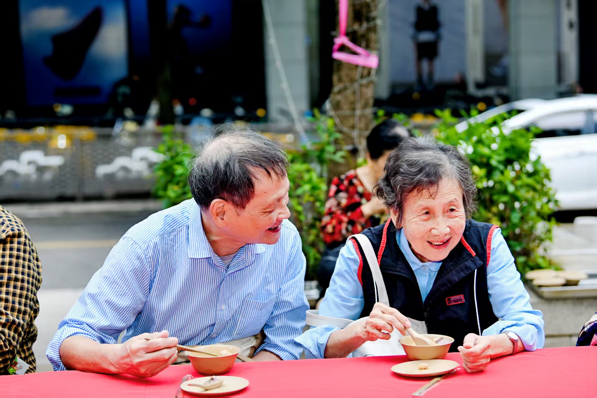 上午,埔前村的长寿老人们齐聚一堂,在熟悉的乡音与精彩的舞台节目中,共话家常,畅谈村里线面产业的新发展。长桌宴上,一碗碗热气腾腾的长寿粥与软润的长寿线面,承载着乡邻情谊与美好祝福,让长者们满载而归。